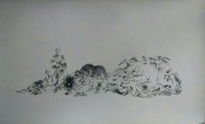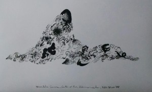 “ADAMAMADA” é uma ficção, cujo título estabelece uma analogia metafórica _ sintetizada em um palíndromo _ que procura relacionar o Pão de Açúcar a uma pulsão, multiplicadora de sentidos. Trata-se de uma investigação poética sobre este ícone carioca, que desenvolvo mediante uma série de desenhos, desde 2012. A partir de pesquisa histórica e iconográfica, incorporo camadas significantes a imagens padronizadas deste monumento natural, com leituras variadas de personagens, inventados por mim, mas não muito distantes de nossa realidade. Conjuntamente, realizo outros segmentos nesta pesquisa , sendo um deles intitulado “A DA MAMADA”, que aos poucos vem se revelando à cidade e aos seus cidadãos. Portanto, “ADAMAMADA” é paixão e suspense que agrega diversos campos de investigação, tais como, memória, documento, tempo-espaço, desconstrução, desejo e recodificação. Fotos do artista.